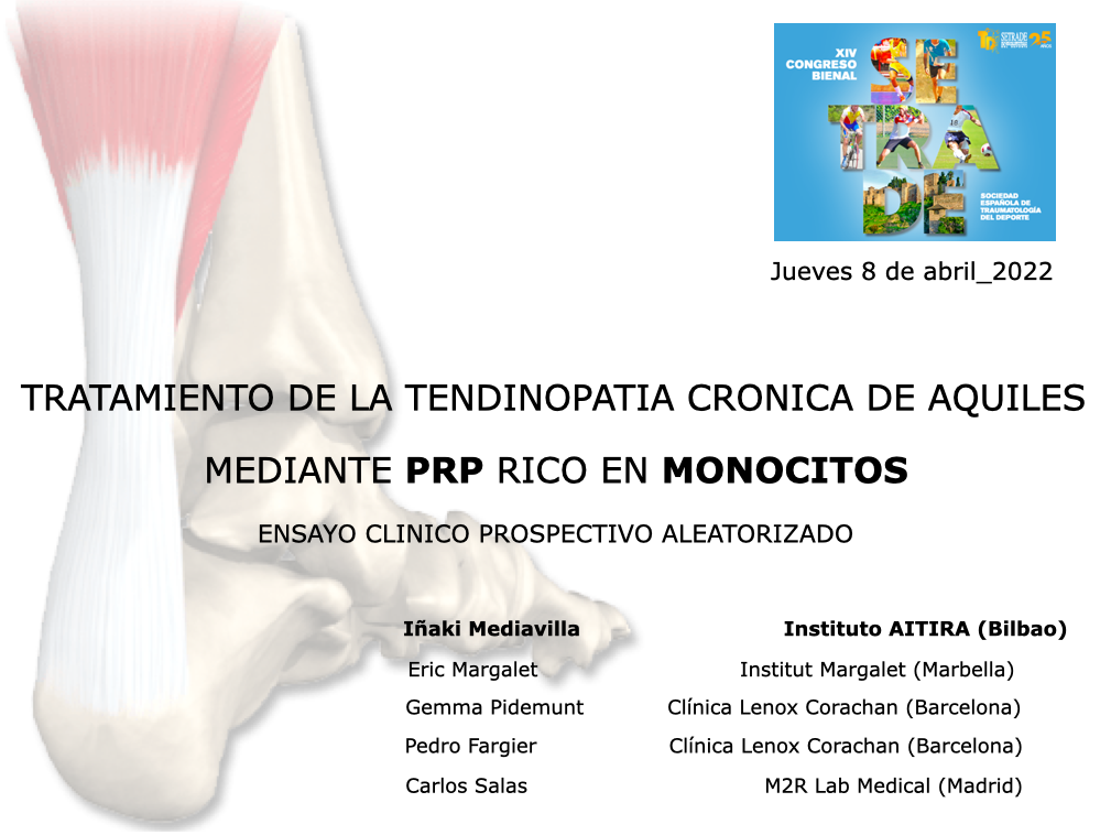 En el recientemente celebrado en Málaga XIV Congreso Bienal de la Sociedad Española de Traumatología del Deporte, el Dr Mediavilla ha presentado una comunicación oral. En ella expone las bondades de un nuevo tratamiento biológico mediante plasma enriquecido con monocitos en el tratamiento de la tendinopatía aquílea.